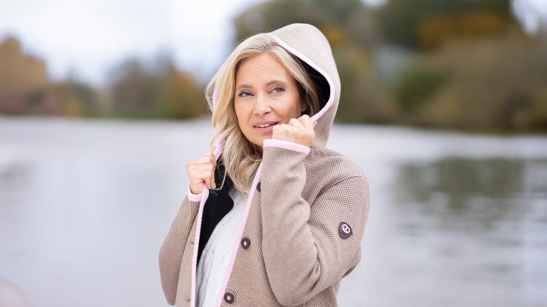 Die Idee zu wetterfesten Strickjacken entstand 2014 auf einer Wanderung am Blomberg – ein Moment der Klarheit nach einer schweren Zeit.